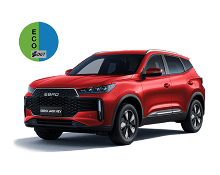 (1) EBRO s400 HEV Premium desde PVP Recomendado Financiando: 19.990,00 €. Incluye IVA, Transporte e Impuesto de Matriculación (IEMT) calculado al tipo general, descuentos del concesionario, fabricante y descuento adicional por financiar con CA Auto Bank, Spa Sucursal en España, según condiciones contractuales por un importe mínimo a financiar de 19.000,00 € con un plazo mínimo de 60 meses y permanencia mínima de 36 meses. Financiación sujeta a estudio y aprobación de la entidad financiera. PVP recomendado al contado: 23.456,84 €. Oferta válida hasta el 31/03/2026 en Península y Baleares. No acumulable a otras ofertas o descuentos especiales. El modelo visualizado puede no corresponder con el vehículo ofertado. No incluye gastos de gestoría, ni matriculación.